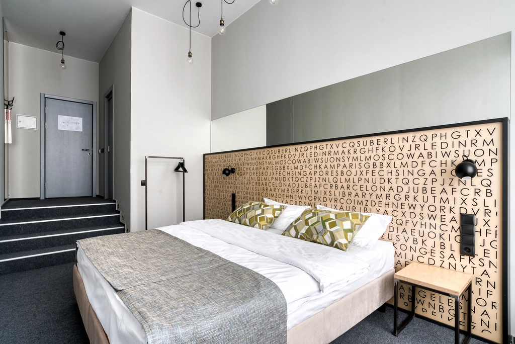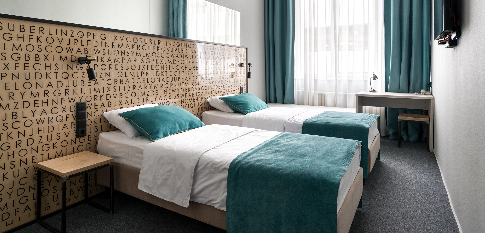 Номера площадью от 18 кв.м. с большой двуспальной кроватью (180х200), или с двумя односпальными кроватями (90х200), с ортопедическими матрасами, с мебелью в стиле лофт, практичная ванная комната с душевой, а также удобная рабочая зона