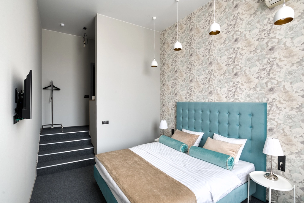 Номера площадью от 25 кв. м. с большой двуспальной кроватью, ортопедическим матрасом, с мебелью в стиле лофт, практичная ванная комната с душевой, а также удобная рабочая зона