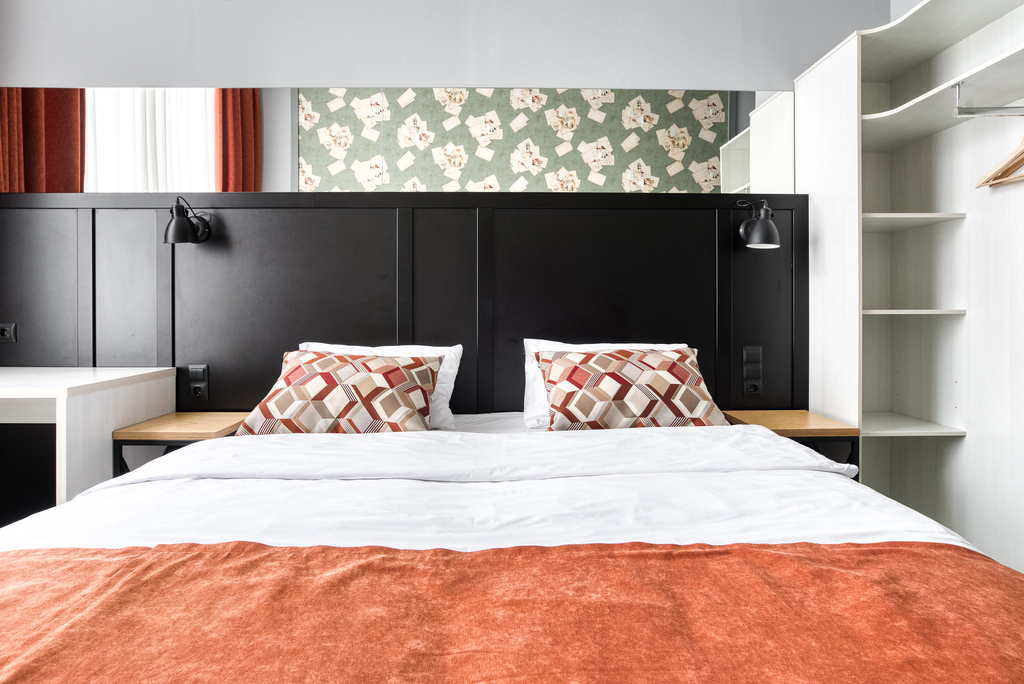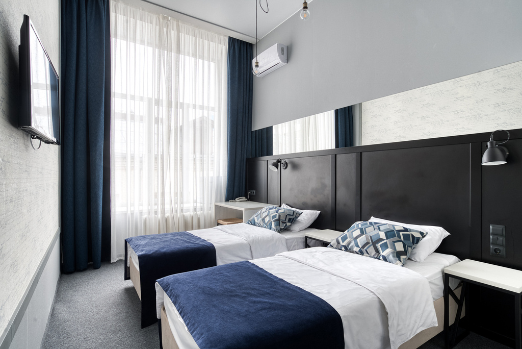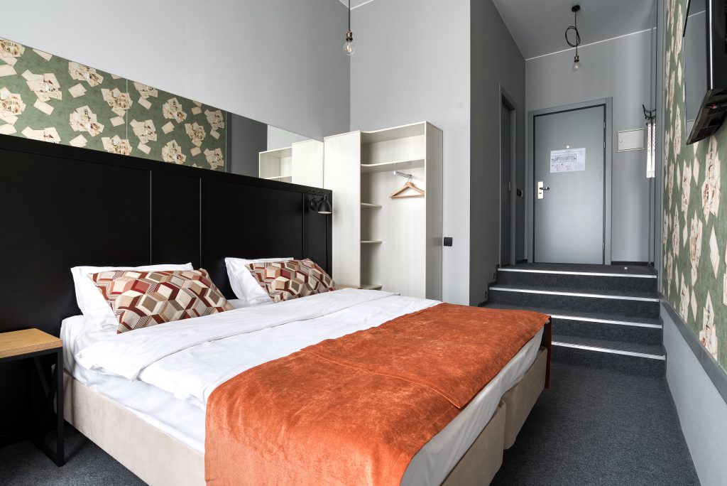 Современно обставленные двухместные номера в скандинавском стиле, площадью от 18 кв.м., созданы для комфортного размещения гостей с большой двуспальной кроватью (180х200), или с двумя односпальными кроватями (90х200), с ортопедическими матрасами, с мебелью в стиле лофт, практичная ванная комната с душевой, а также удобная рабочая зона.